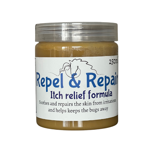 Instructions for use: For best results, give your horse a really good wash in a gentle shampoo (why not try one of ours). Once your horse is DRY apply a generous amount of Repel & Repair over any sores or rub marks. Massage well into the skin, especially around the hair roots on the mane and tail.