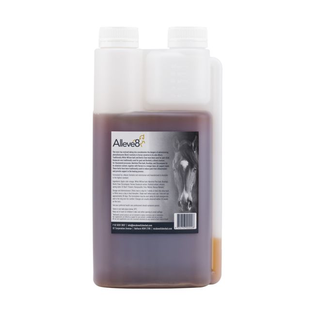 This formulation has evolved from a consideration of the dangers of administering phenylbutazone (Bute) routinely to horses sensitive to its side effects. Traditionally White Willow Bark and Devils Claw were used to manage pain. Guaiacum was traditionally used for Gout and Burdock as a blood cleanser for Rheumatoid processes. Maritime Pine Bark, Rosehips, Elecampane with  its Allantoin content , together with Yarrow in a Vinegar base all support and encourage repair.